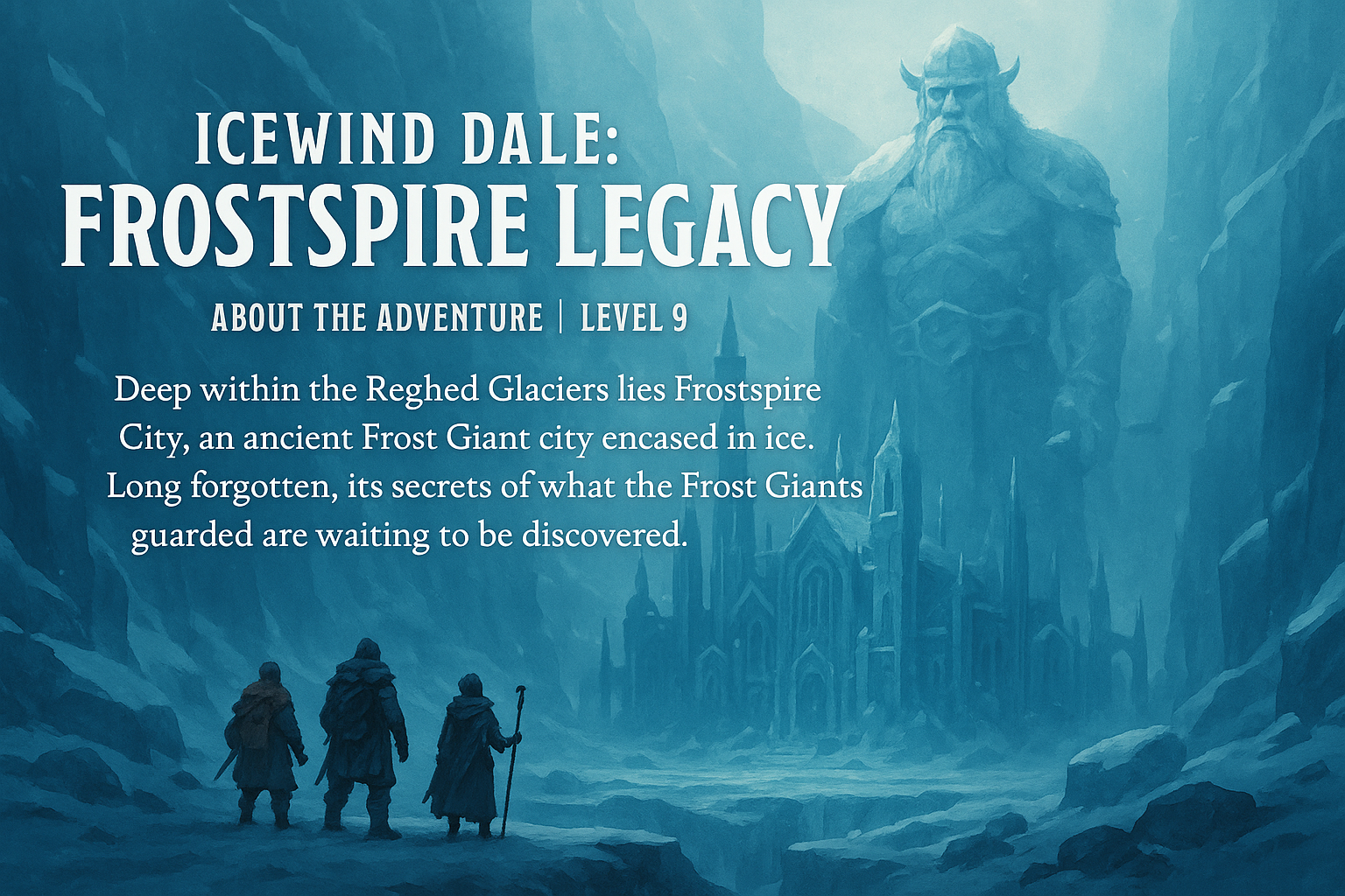 In the aftermath of Auril’s defeat, Icewind Dale begins to thaw—but beneath the ancient glaciers, something stirs. The eternal winter may be broken, but the ice remembers. Deep within the Reghed Glacier, an expedition led by the Driftwood Scribe of Bryn Shander, a cartographer and archaeologist, has uncovered traces of a lost Frost Giant civilization: Frostspire City.