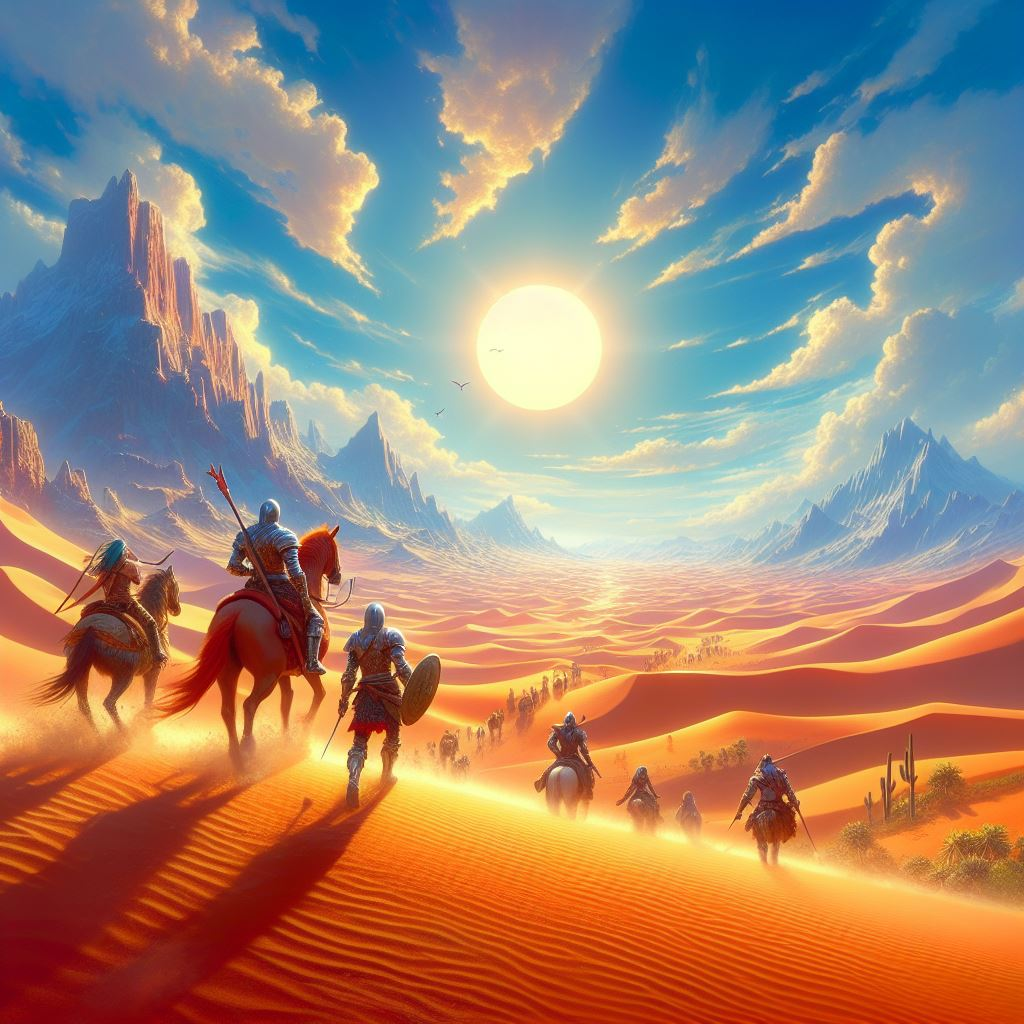 You’ve done your job. At least, the first half of it. You found the villainous enemy of goodness and justice, and now you have to escort them back across the scorching desert. Navigating this area of inhospitable, barren land is almost impossible, unless you are wealthy enough to buy passage on a skyship. Fortunately, your party has found the funds for the flight. Unfortunately your travels face some unexpected turbulence when they crash land in the desert.